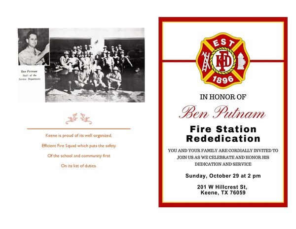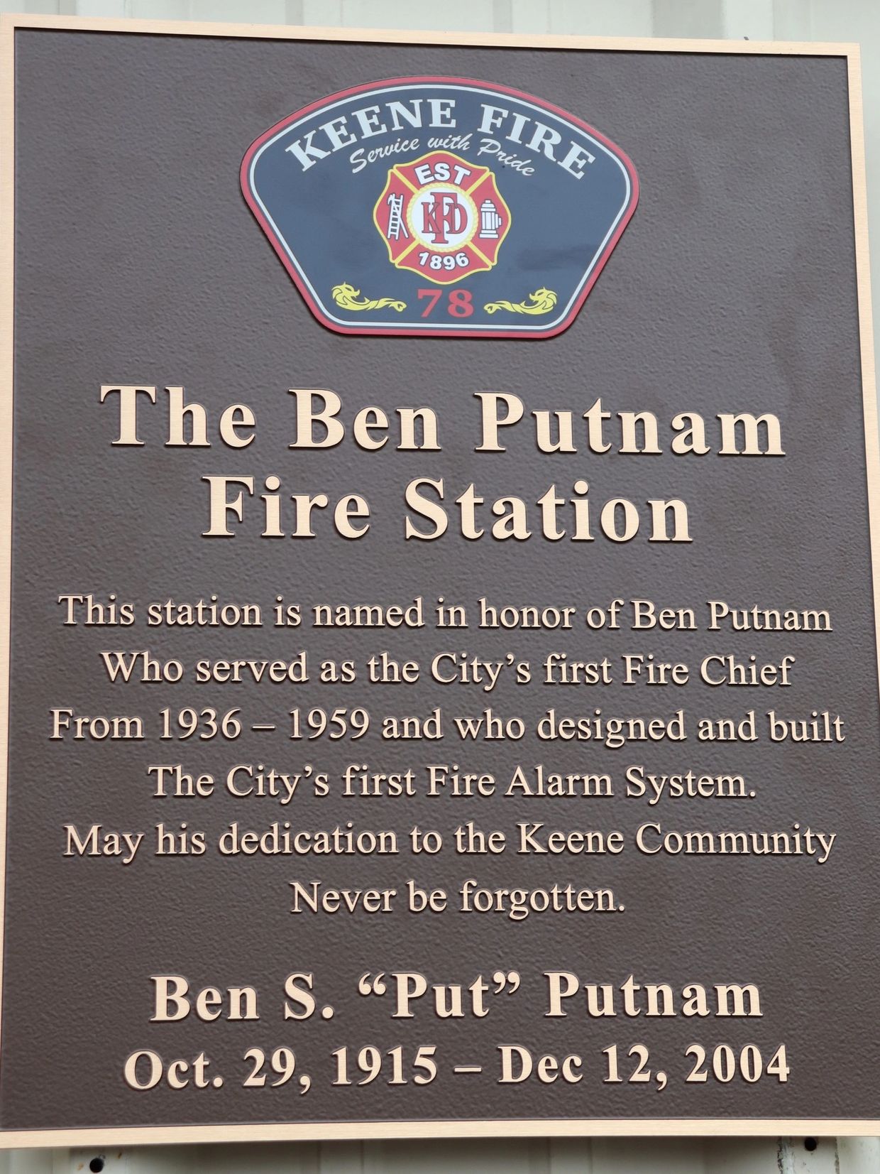 One of Mayor Parrish’s vision for the Keene community was to name the fire station in honor of Ben Putnam, the first Fire Chief and Fire Marshall of Keene.
