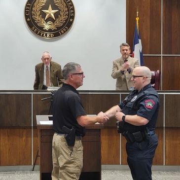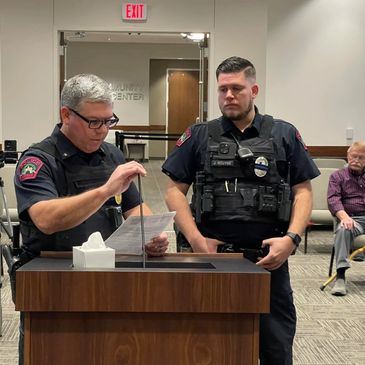 Chief Hunt presented Officer Rouyre with the Life Saving Award for his actions performing CPR on an individual in Jan. 2023.